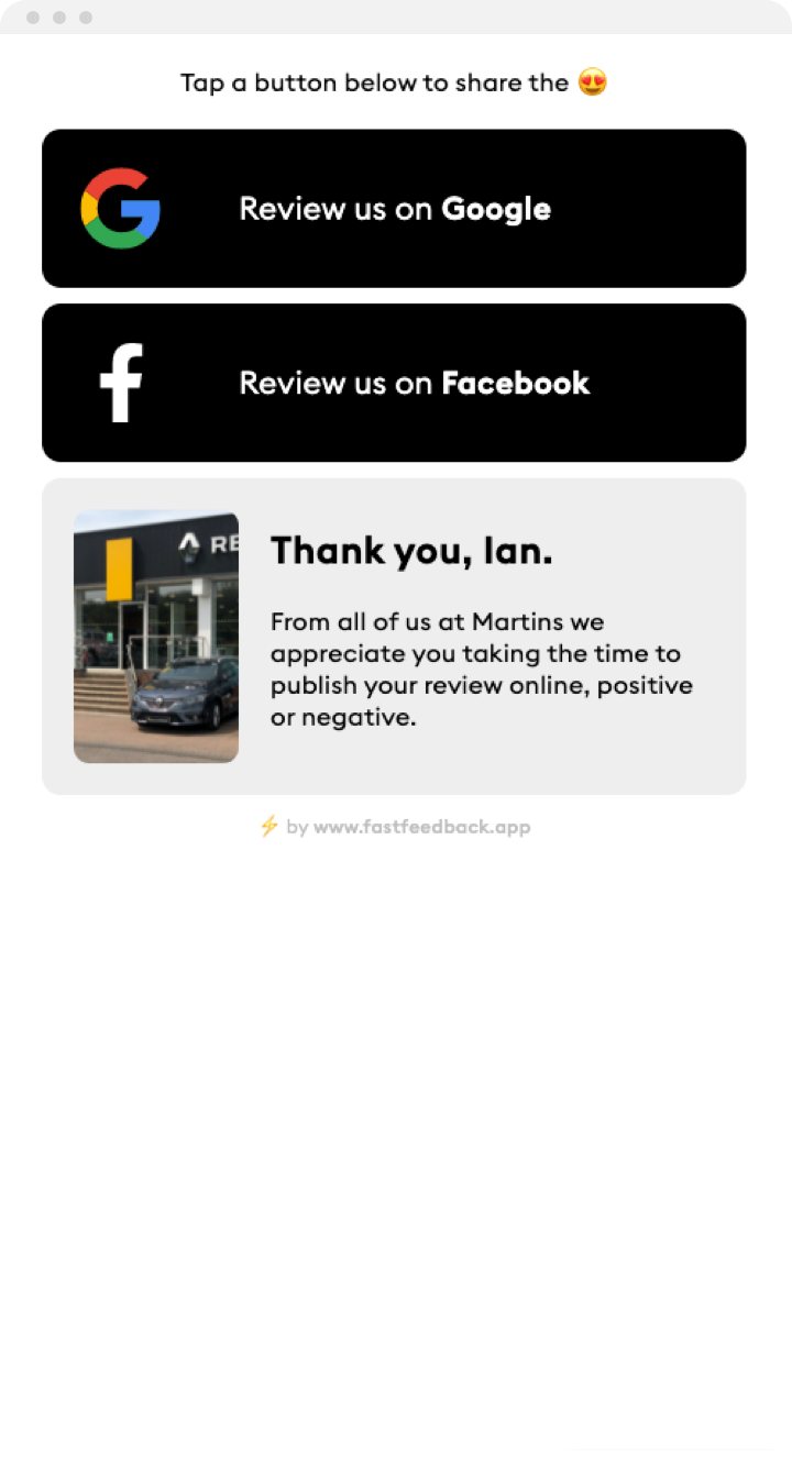 Businesses use FastFeedback to collect customer feedback and online reviews via SMS.